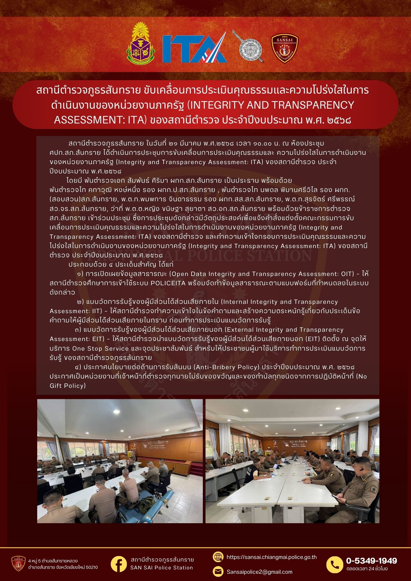 วันที่ 27 ธันวาคม 2567 เวลาประมาณ 10.00 น. พ.ต.อ.สัมพันธ์ ศิริมา ผกก.สภ.สันทราย พร้อม จนท.ตำรวจ สภ.ส