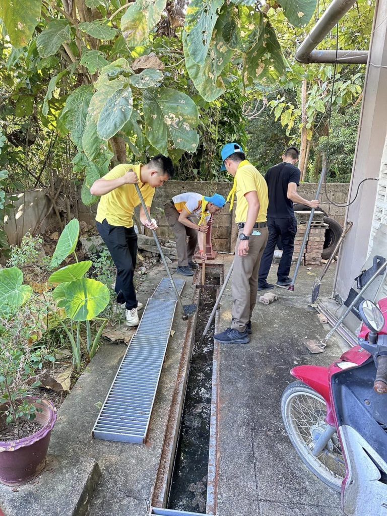 วันที่ 4 ธันวาคม 2566 เวลา 13.00 น. พ.ต.ท.ธเนตถ์ วิบูลย์เกียรติ์ รอง ผกก.ป.สภ.สันทราย พร้อมข้าราชการตำรวจจิตอาสา สภ.สันทราย ได้ร่วมกิจกรรมจิตอาสาพัฒนาบำเพ็ญสาธารณประโยชน์ พัฒนารอบสถานีตำรวจภูธรสันทรายและขุดลอกร่องระบายน้ำบ้านพักของสถานีตำรวจภูธรสันทราย เพื่อถวายเป็นพระราชกุศลเนื่องในวันคล้ายวันพระบรมราชสมภพ พระบาทสมเด็จพระบรมชนกาธิเบศรมหาภูมิพลอดุลยเดชมหาราช บรมนาถบพิตร ณ สถานีตำรวจภูธรสันทราย จังหวัดเชียงใหม่