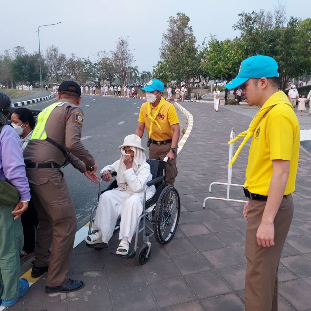 วันที่ 7 มีนาคม 2567 เวลา 06.00-14.00 น. โดยการอำนวยการของ พ.ต.อ. สัมพันธ์ ศิริมา ผกก.สภ.สันทราย พ.ต.ท.ธเนตถ์ วิบูลเกียรติ์ รอง ผกก.ป.สภ.สันทราย ได้มอบหมายให้ พ.ต.ต.ศักดิ์ริน บุญหล่อ สว.อก.สภ.สันทราย พ.ต.ต.วิรัก คำเชื้อ สวป.(ชส.)สภ.สันทราย พร้อมข้าราชการตำรวจชุดจิตอาสา จำนวน 20 นายร่วมทำกิจกรรมจิตอาสา “เราทำความดีด้วยหัวใจ“ อำนวยความสะดวกให้กับประชาชนผู้สูงอายุ โดยบริการวิลแชร์ และบริการแจกน้ำดื่มให้กับประชาชน ที่มาสักการะพระบรมสารีริกธาตุและพระอรหันตธาตุ ของพระสารีบุตรและพระโมคคัลลานะ จากพิพิธภัณฑสถานแห่งชาติอินเดีย มาประดิษฐานเป็นการชั่วคราวให้พุทธศาสนิกชนได้สักการะเป็นสิริมงคล ที่ หอคำหลวง อุทยานหลวงราชพฤกษ์ ตำบลแม่เหียะ อำเภอเมืองเชียงใหม่ จังหวัดเชียงใหม่ เพื่อเฉลิมพระเกียรติพระบาทสมเด็จพระเจ้าอยู่หัว เนื่องในโอกาสพระราชพิธีมหามงคลเฉลิมพระชนมพรรษา 6 รอบ 28 กรกฎาคม 2567