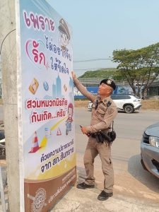 โดยการอำนวยการของ พ.ต.อ.สัมพันธ์ ศิริมา ผกก.สภ.สันทราย, พ.ต.ท.คทาวุฒิ หงษ์หนึ่ง รองผกก.ป.สภ.สันทราย ได้มอบหมายให้ พ.ต.ท.สุรจิตร ศรีพรรณ สว.จร., พ.ต.ต.วิรัก คำเชื้อสวป.(ชส)ฯ พร้อม ชุดจิตอาสา, ชุด ขมส. ชุดจราจร สภ.สันทราย ร่วมกันติดตั้งป้ายรณรงค์ประชาสัมพันธ์ป้องกัน และ ลดอุบัติเหตุทางถนน เนื่องในวันหยุดยาว ช่วงเทศกาลสงกรานต์ ประจำปี 2568 บริเวณจุดเสี่ยง ที่มีการเกิดอุบัติเหตุบ่อยครั้ง ในพืื้นที่รับผิดชอบ