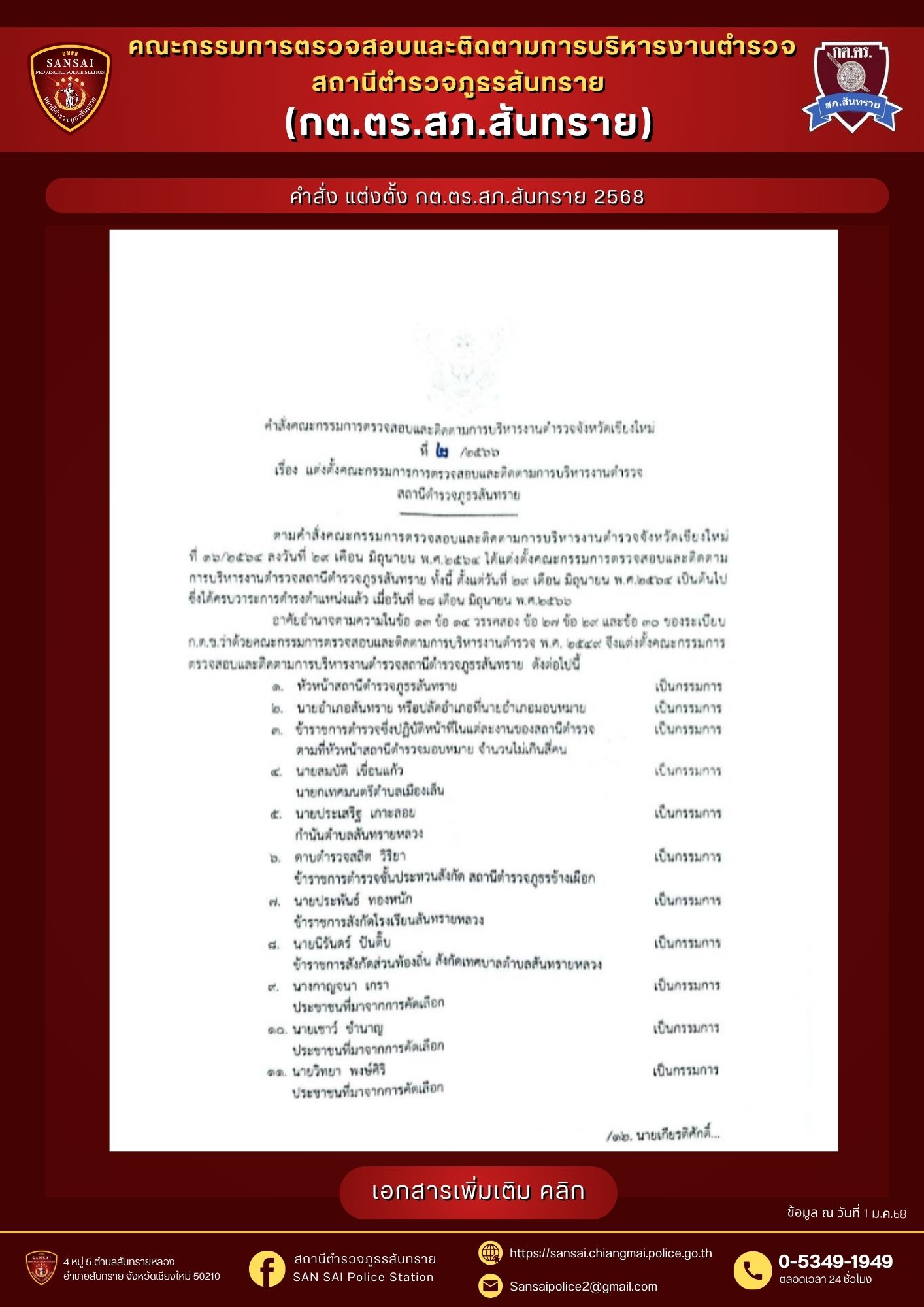 O4 ข้อมูลคณะกรรมการตรวจสอบและติดตามการบริหารงานตำรวจ (กต.ตร) ของสถานีตำรวจ