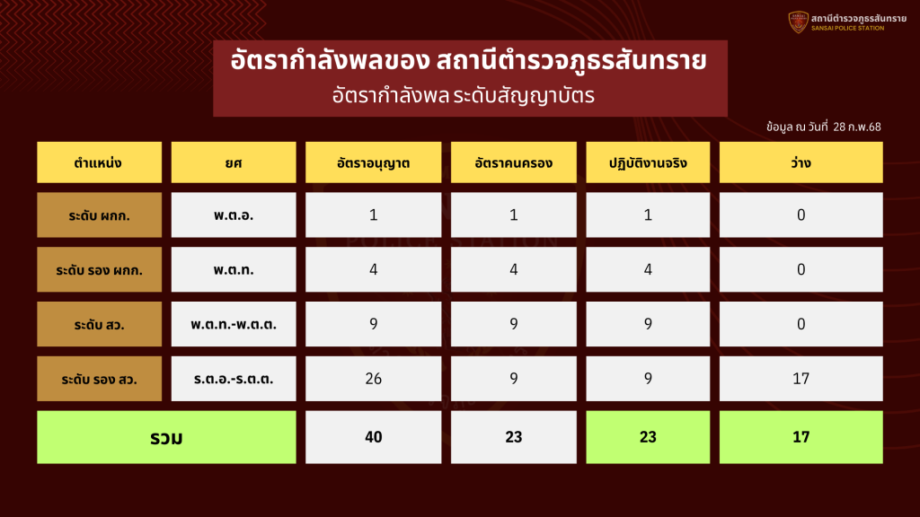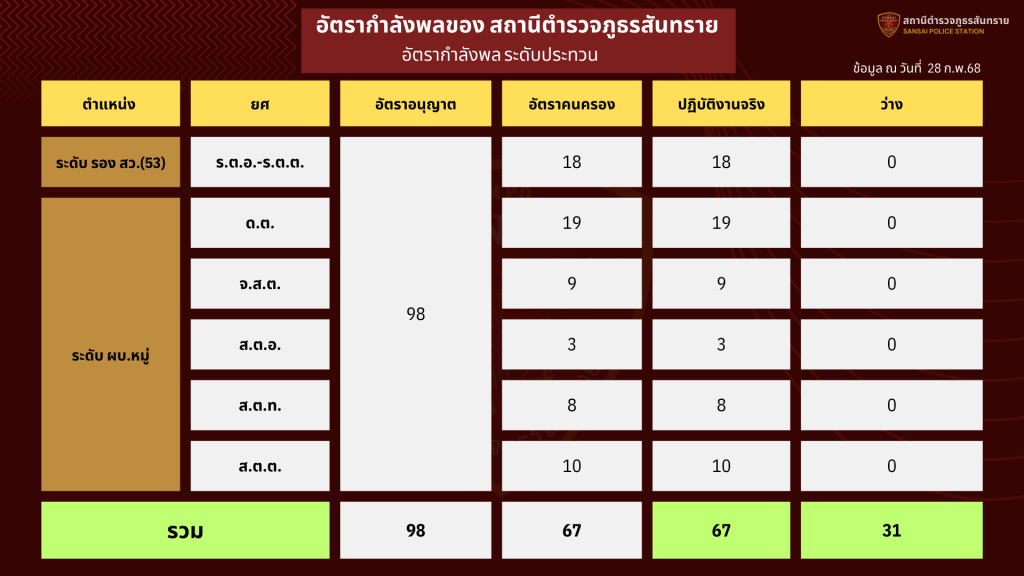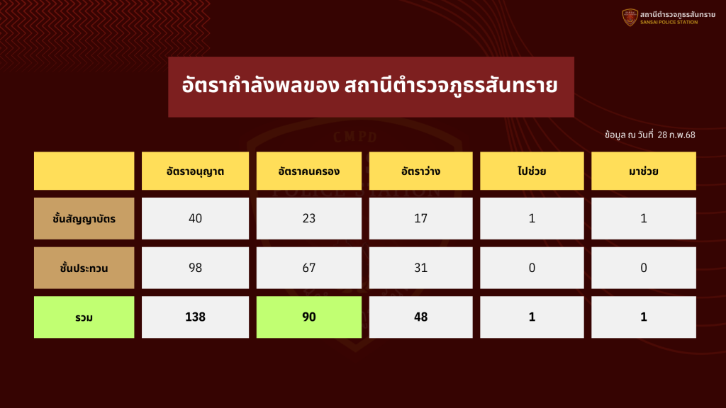 สถานภาพกำลังพล สภ.สันทราย จว.เชียงใหม่